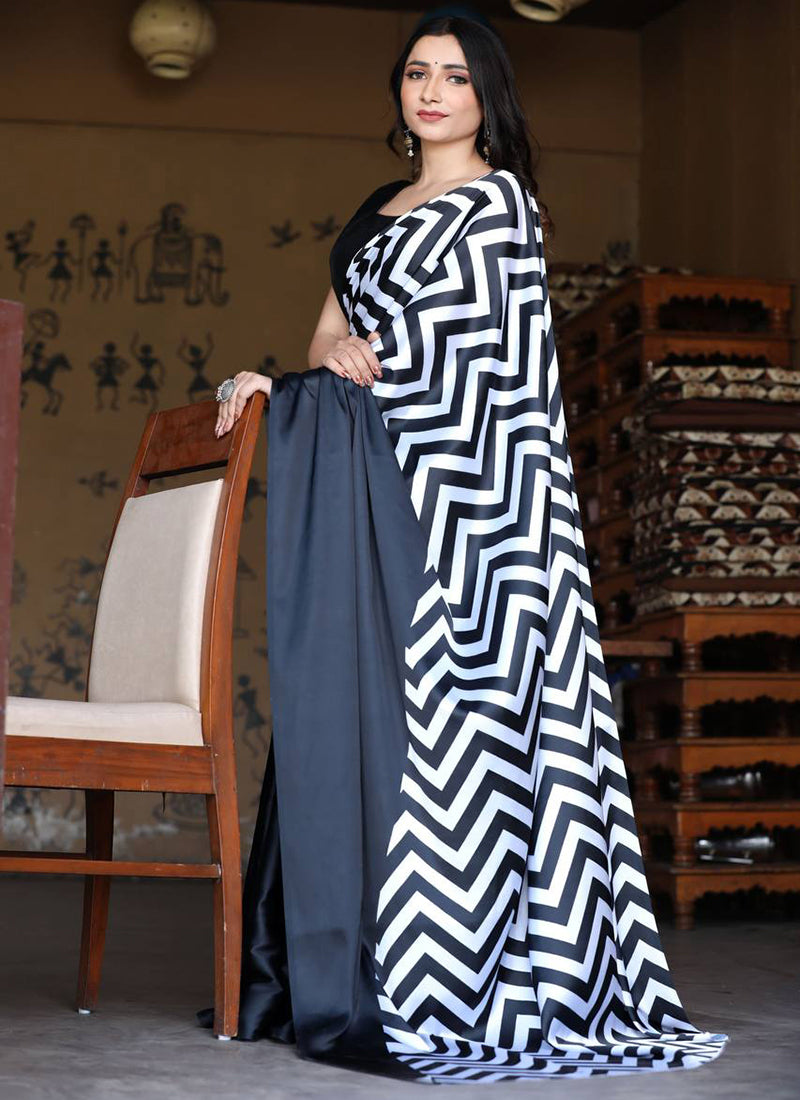 Black Original Japan Devsena satin Saree Japan Satin Digital Print Blouse
