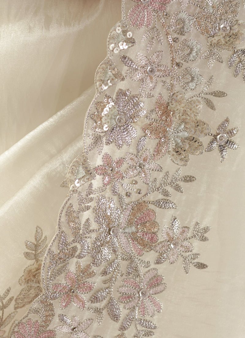 White Tissue Silk Sequence & Resham Work Heavy Designer Saree