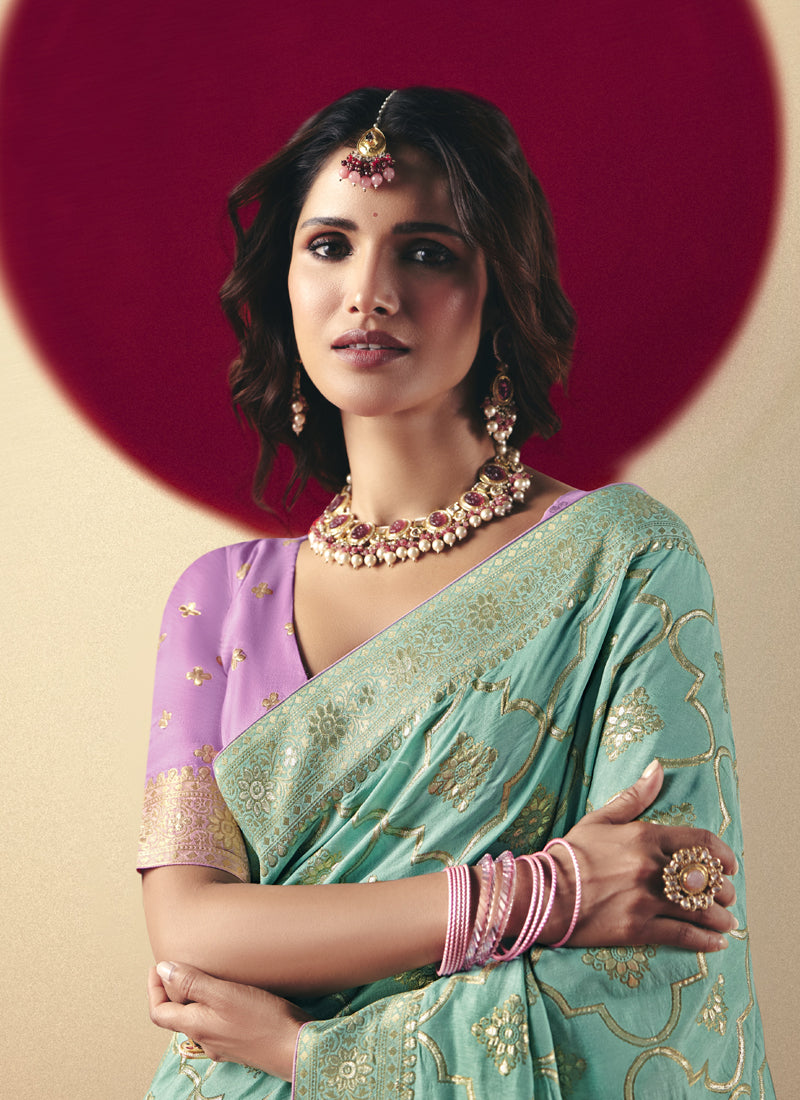 Sky Blue Bemberg Viscose with Designer Weaving Work With Contrast Weaving Work Blouse