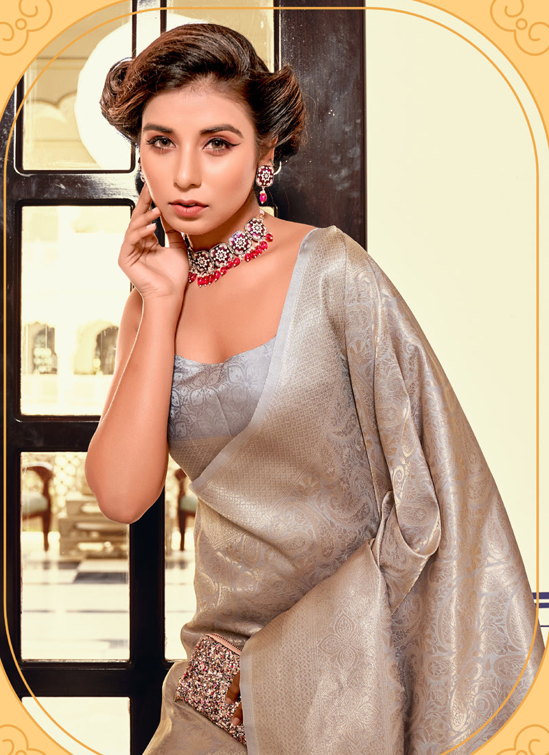 Gray Kanchipuram Silk Weaving With Tassels Beautiful Saree