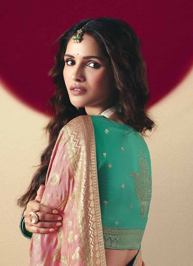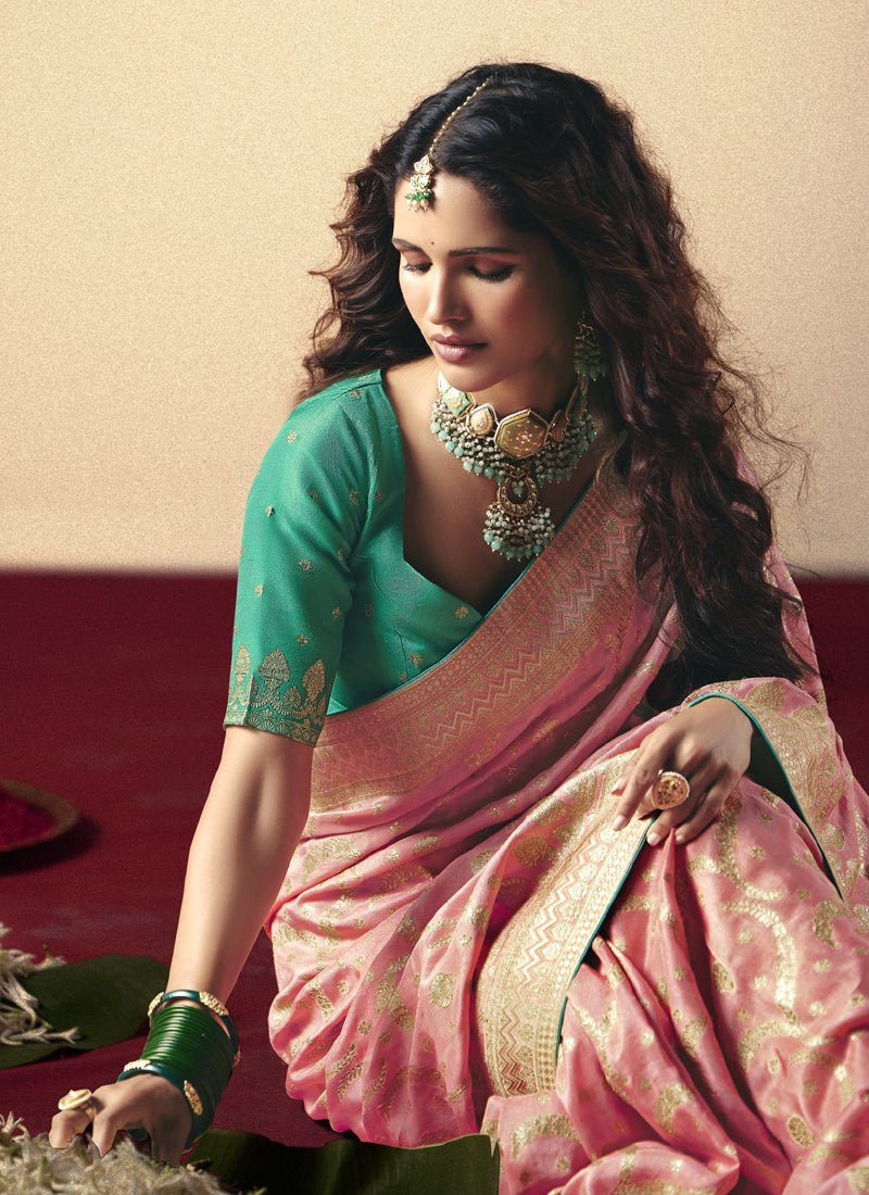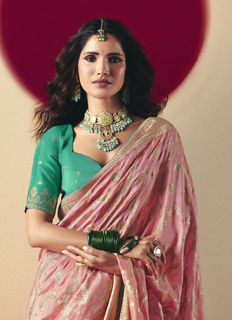 Light Peach Bemberg Viscose with Designer Weaving Work With Contrast Weaving Work Blouse