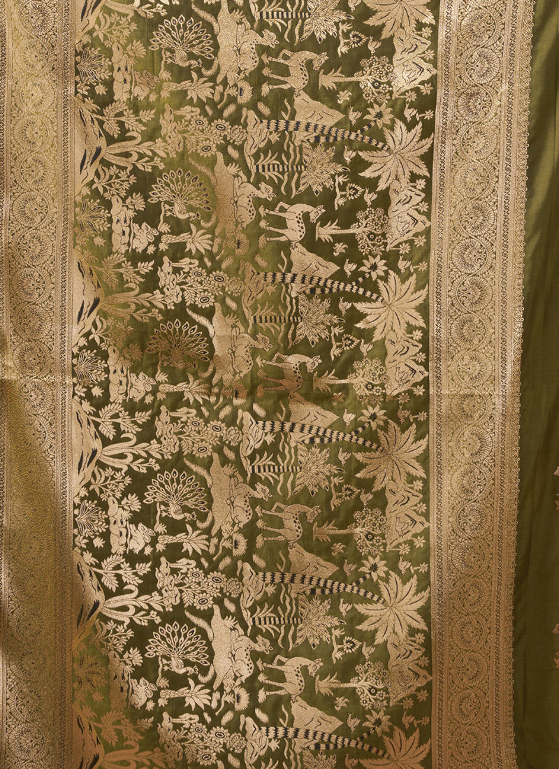 Mehndi Art Silk Beautiful Zari With Tussles & Rich Pallu Saree
