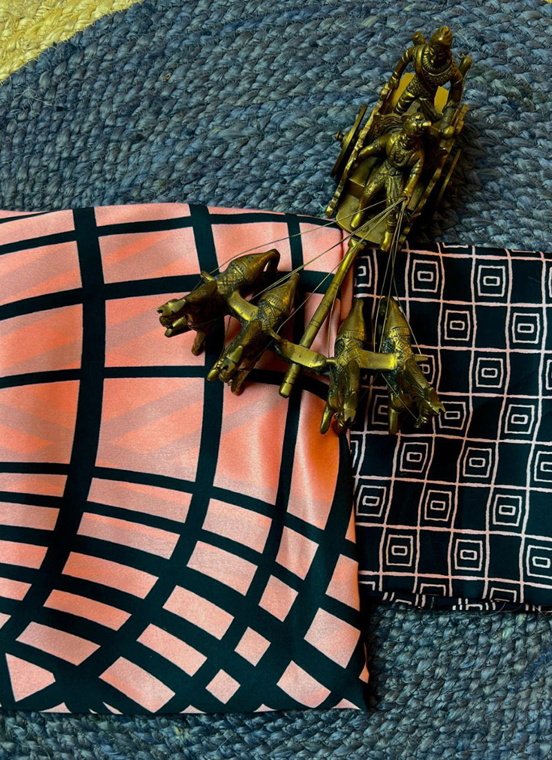 Peach Original Japan Devsena satin Saree Japan Satin Digital Print Blouse