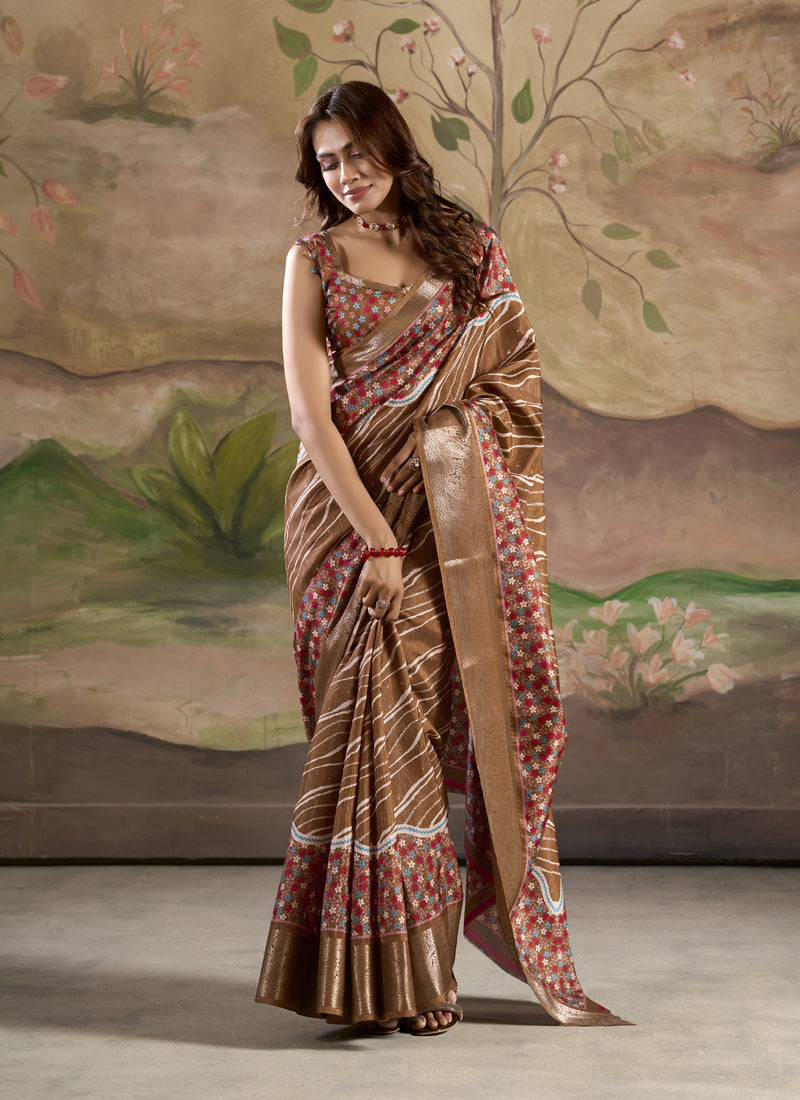 Coffee Silk Blended Printed Casual Wear Saree