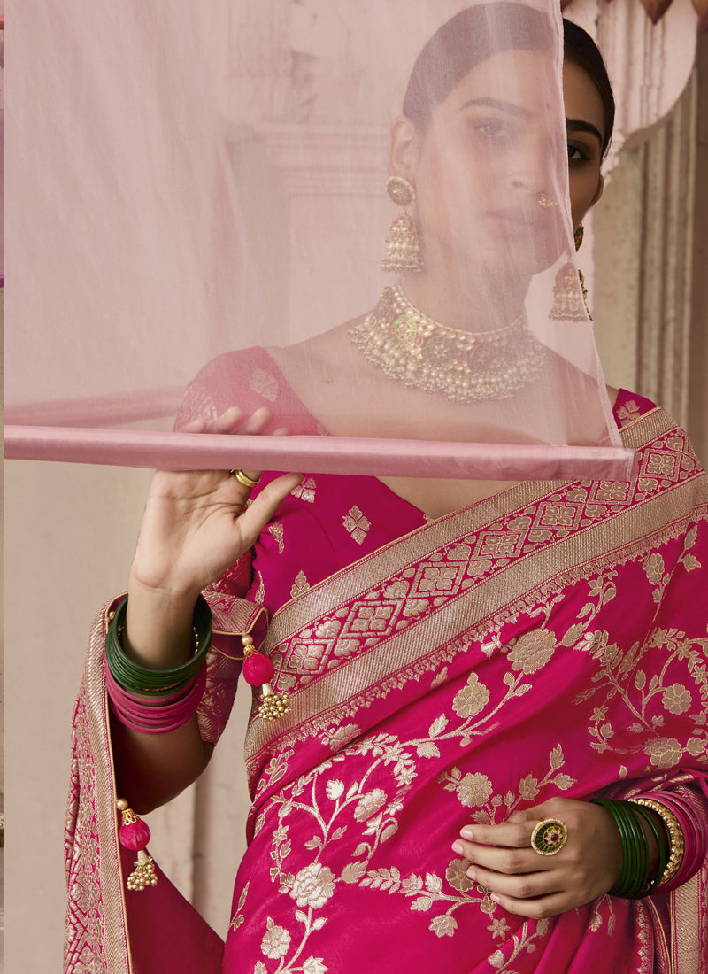 Red Dola Silk Weaving On All Over Saree Heavy Designer Contras Blouse