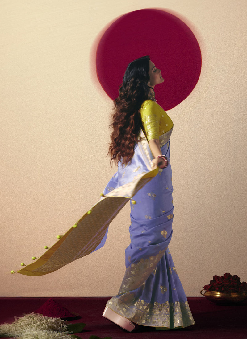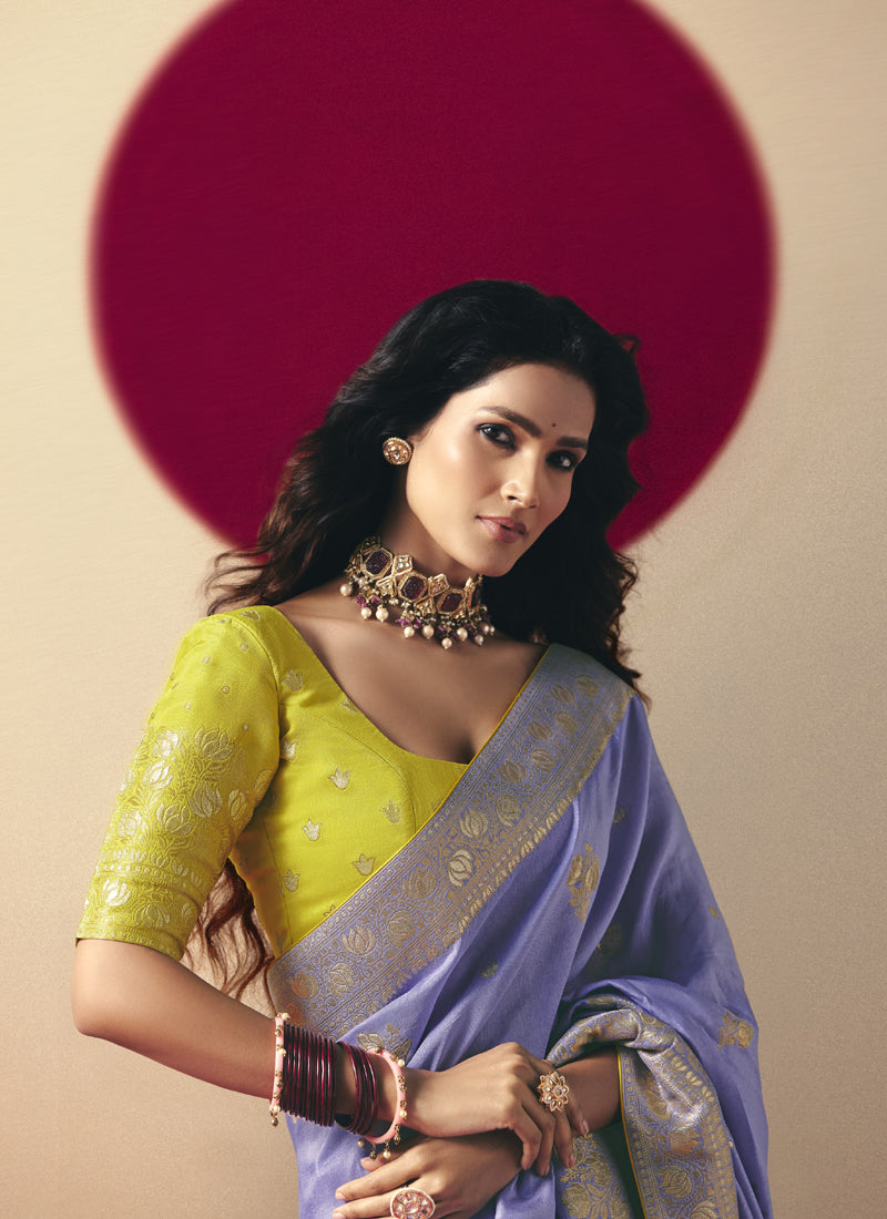Lavender Bemberg Viscose with Designer Weaving Work With Contrast Weaving Work Blouse