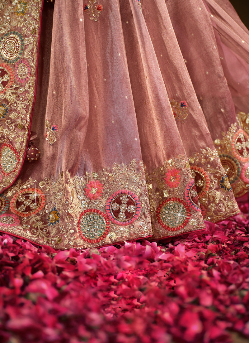 Peach Zari Oranza Silk Khatli Work With Sequince Heavy Designer Saree