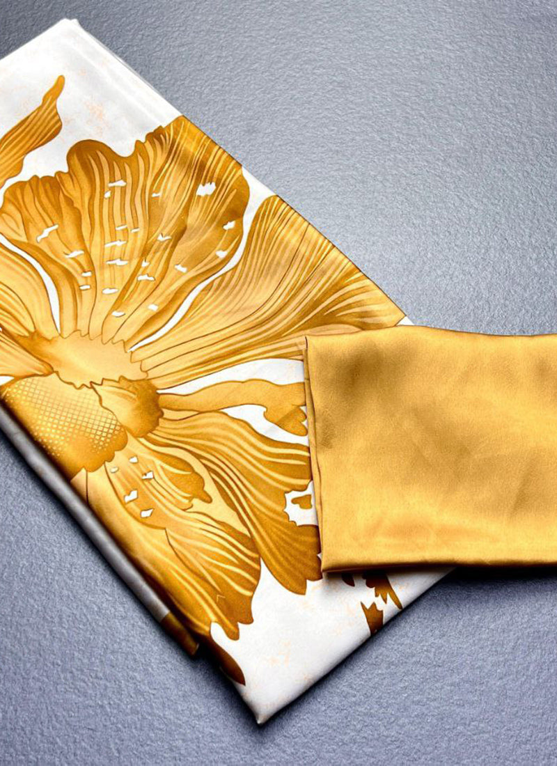White Original Japan Devsena satin Saree Japan Satin Digital Print BlouseSudha-158-D