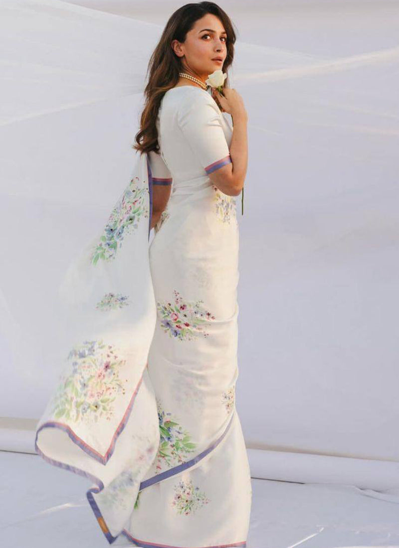 White Original Japan Devsena satin Saree Japan Satin Digital Print Blouse
