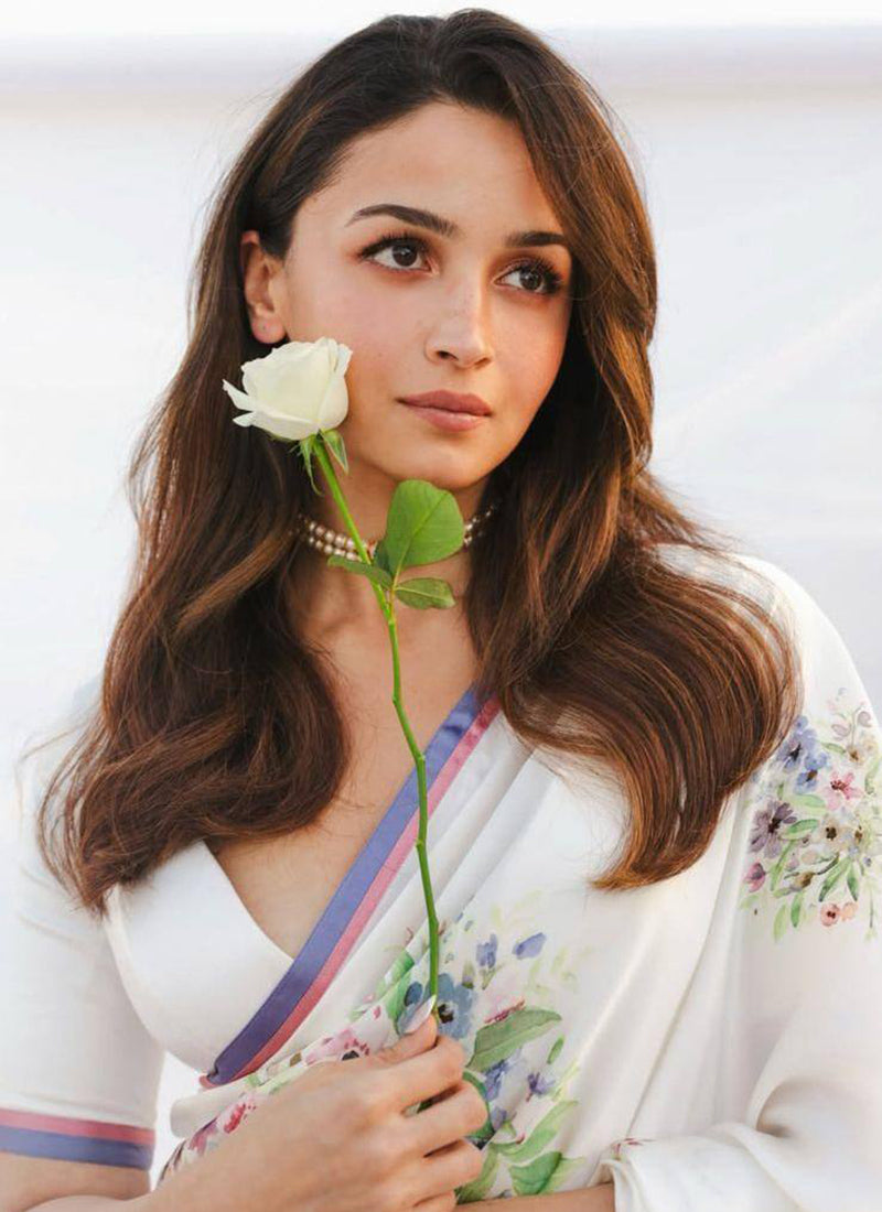 The saree in the image is described as a luxurious Original Japan Satin (Devsena Satin) saree with ensuring comfort and a graceful drape.White digital print. It measures 6.30 meters in length and includes a 0.80-meter Banglory satin blouse piece. This type of saree is considered elegant and suitable for festive occasions, weddings, parties, and sophisticated casual wear. The fabric is known for being ultra-soft, lightweight, and glossy,